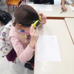 Παρακολουθήσαμε σχετικά βίντεο και συζητήσαμε για τις δυσκολίες αλλά και τις δυνατότητες που έχουν τα άτομα με αναπηρία. Στη συνέχεια, μέσα από βιωματικές δράσεις «μπήκαμε στη θέση» τους: φορέσαμε μαύρα γυαλιά και δοκιμάσαμε να κινηθούμε σαν άτομα με οπτική αναπηρία, προσπαθήσαμε να γράψουμε χωρίς να χρησιμοποιήσουμε τα χέρια μας αλλά μόνο με το στόμα, ενώ επιχειρήσαμε να επικοινωνήσουμε μεταξύ μας χρησιμοποιώντας νοηματική, χωρίς λόγια.